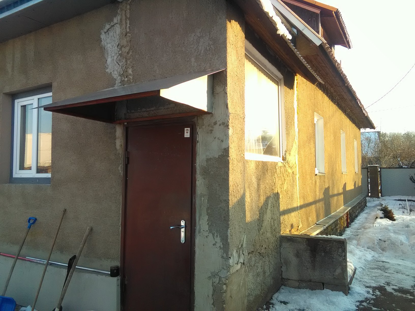 eesmärk oleks ajutiselt kuidagi seina vajumine pidurdada, et esimeste soojadega saaks lammutama hakkata. Kuigi see on kinniseks eeskojaks ehitatud, on veel uks, mis oli varem välisuks, täiesti paigas, seega otsest külma pole karta...