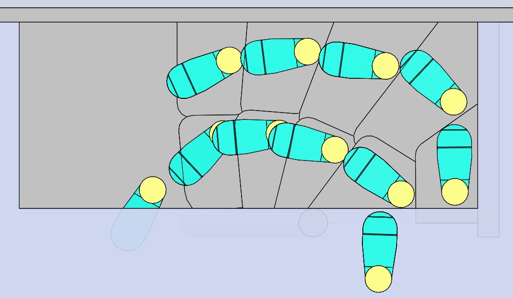 (Trepp tuleb kitsastesse oludesse, kaldus teleje puhul pööre 90°, vert saaks iseenesest teha max150°, järsu tõusu tõttu ka ebasümmeetrilised astmed parema / vaskau jala jaoks)