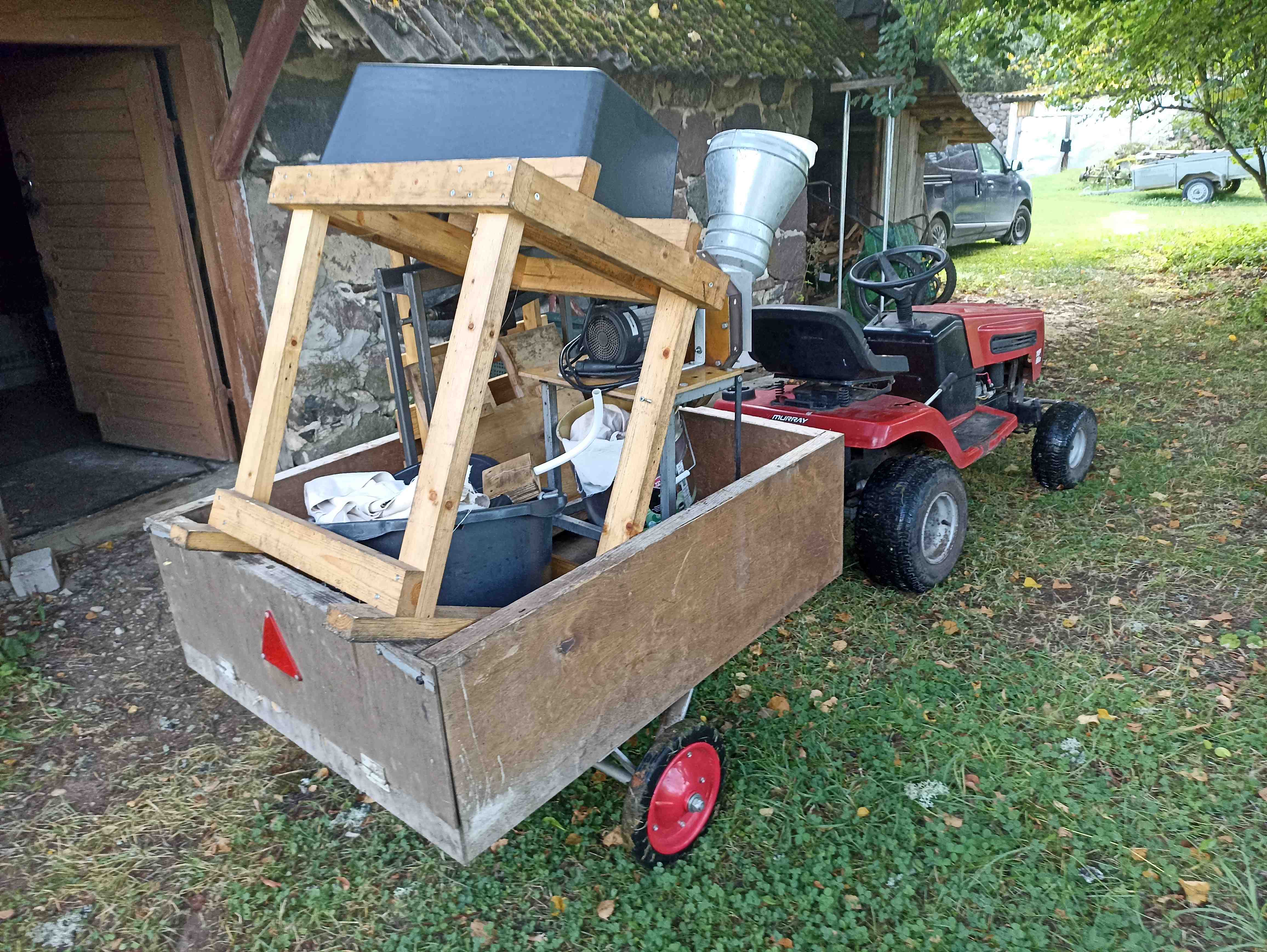 Meie oma komplekti õnneks autosse enam tirima ei pea, vaid aidast uksest välja traktori peale ja saunani ning pärast sama teed pidi tagasi.