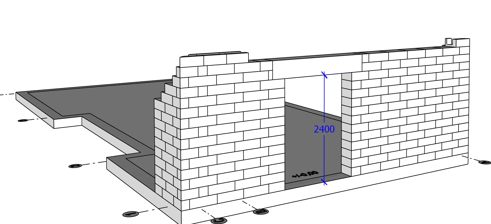 Endal samamoodi projekteeria pani avade kõrguseks 2100mm. Põranda 0 vundamendi äärega tasa. Oli valik kas muuta avad 2000mm või 2200mm peale, samuti seina sokutada keskele või silluste alla 100mm plokirida - mis tundus isegi võhikuna vägagi vale. Lahendame 100mm põranda ja seega ka 0 punkti tõstmisega, millega saab ühtlasi maani aknaavade külmasildu pisut vähendada.