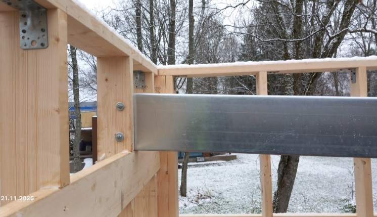 projektis on antud, et piirist peab sein olema 1 m ja ma üritan pingsalt ka seda jälgida. Üks sein peab hakkama kokku minema olemas olevaga. Ka see seab ette piirid, mida saab ja mida mitte. Ma pigem paneks välimise (horisontaalse) roovi paksema, et laudade kinnitusvahendid saaksid olla pikemalt aluspuidus.