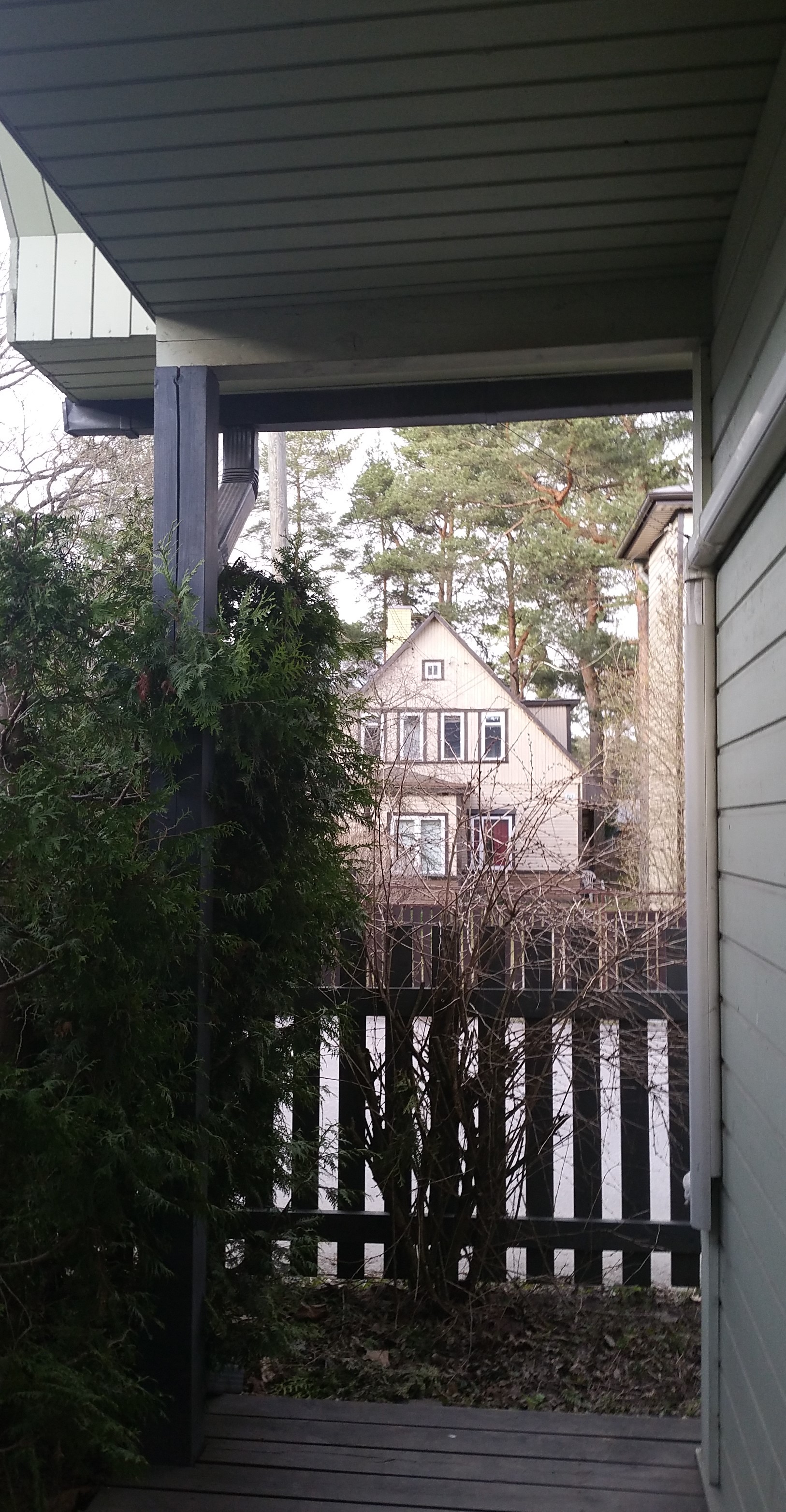 Rõdu välimine osa toetub postidele. Ühe külje peal olev post tundub olevat vajunud. Igatahes on rõdu ühe külje välimine pool allapoole vajunud.