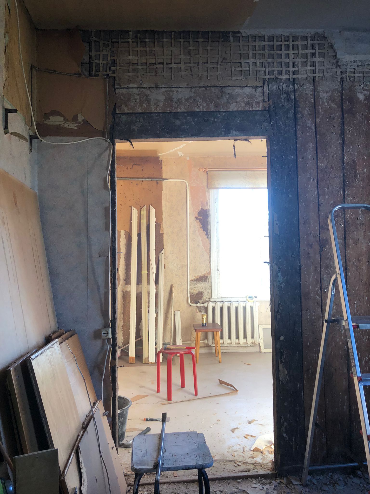 Proovin laest veidi krohvi juurde lõhkuda, et näeksin mis millele toetumas on. Muidu ei olnud plaanis seal lage rohkem lammutada.