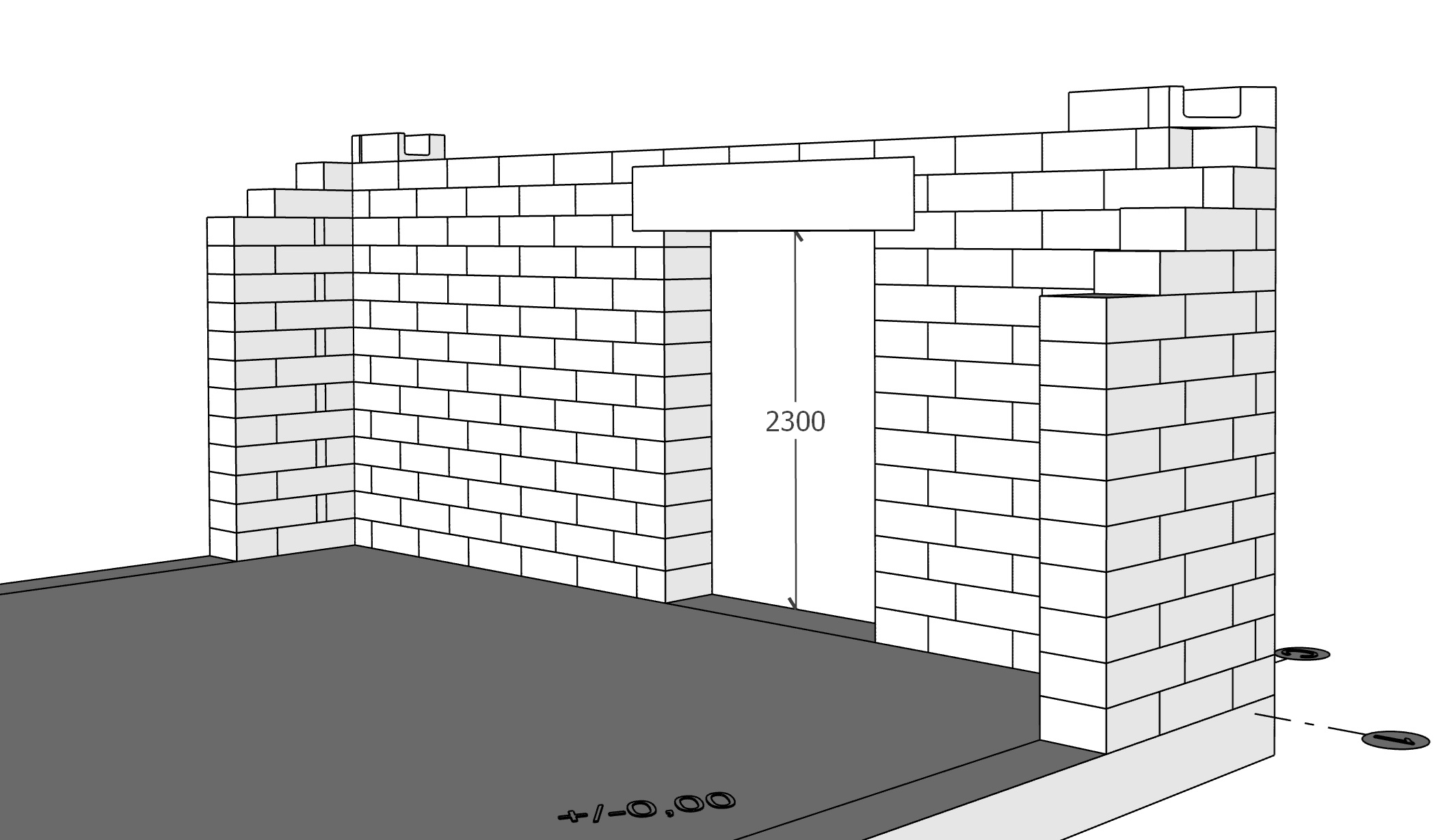 Põranda tasapind peaks olema nurga külmasilla vähendamiseks plokkide vahel ja ukse lävepaku alla lisatakse 10cm kõrgune plokk, lävepaku jäätumise vältimiseks.