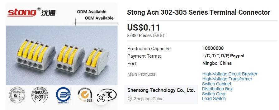 See on hiinlaste WAGO kloon.ping kirjutas: 25 Jaan 2025, 11:55 Depos müüdav 221 ühenduse sarnasel tootel puudub peal tootja märge ja igasugused vastavusmärked. https://online.depo-diy.ee/product/34991