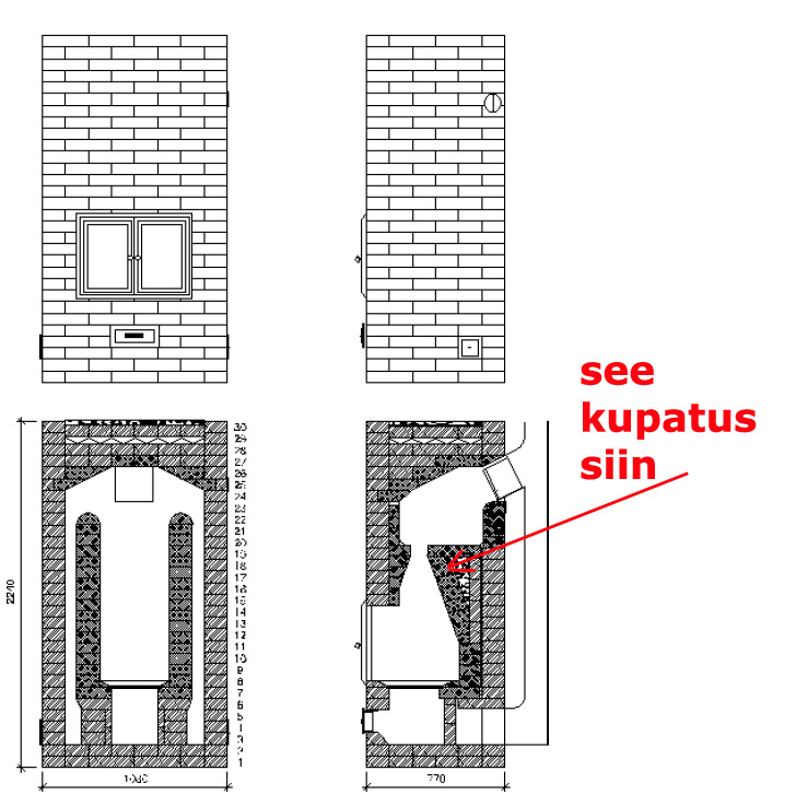 Saad valesti aru. Uks peab ees olema vabalt. Ahi peab ise üleval seisma. Selle joonise järgi õiget asja ei saa.T-800 kirjutas:...Kas ma saan õigesti aru et välismüüritis(punane kivi) toetub uksele ...
