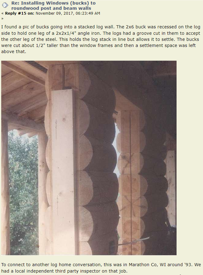 Kunagi üks palkmaja ehitaja võttis vana tenderposti ära, lõikas palkidesse 50x50 soone, pani sinna 50x50 prussi ja peale mingi ~200x45 laua/prussi ning naelutas need kokku (justkui T-tala). Samas ta naelutas ka selle 200x45 laua pikkade (sepa)naeltega palkide külge. Kõva mootorsae töö. Aken akna haaval võeti eest ära ja tehti aknaavad valmis. Praegu enam nii teha ei taha - esiiteks ei taha jätta aknaavasid eest ära määramata ajaks kuni uued aknad saabuvad ja teiseks ei oska ka mootorsaagi nii hästi käsitleda.