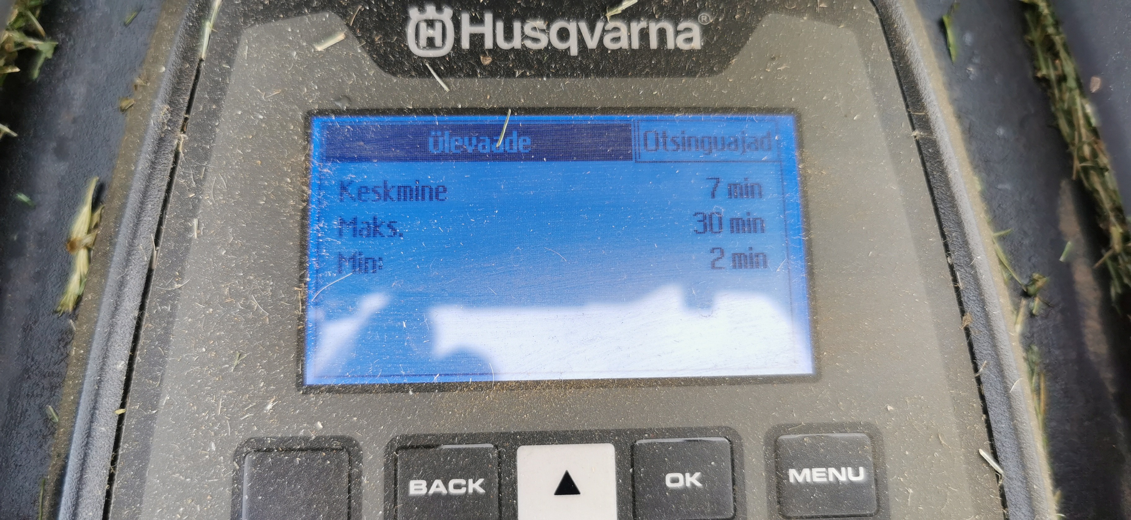 Juhtkaabel on paigaldatud. Algseadistustes oli juhtkaabli otsimise viiteaeg 3 minutit ja piirdekaabli oma 10 minutit. Olen proovinud ka siin foorumis olnud soovitust piirdekaabeliga kodu otsimine välja lülitada ning juhtkaabli viivituse 0min panna. Tuntavat erinevust täheldanud pole. Sellest ajast pärineb ka ilmselt kodu otsimise rekord 30 minutit ning ise seletan seda sellega, et lapsed olid ühe oma ATV juhtkaablile ja teise laadimisjaama ette niidukile jalgu unustanud.