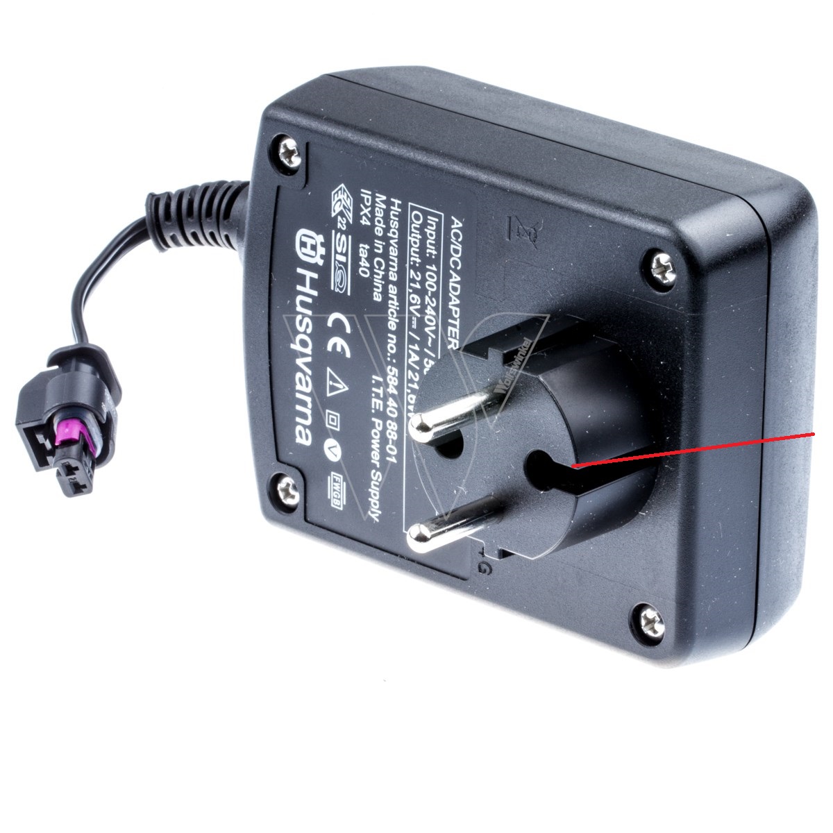 230 V wall socket via the low voltage cable and