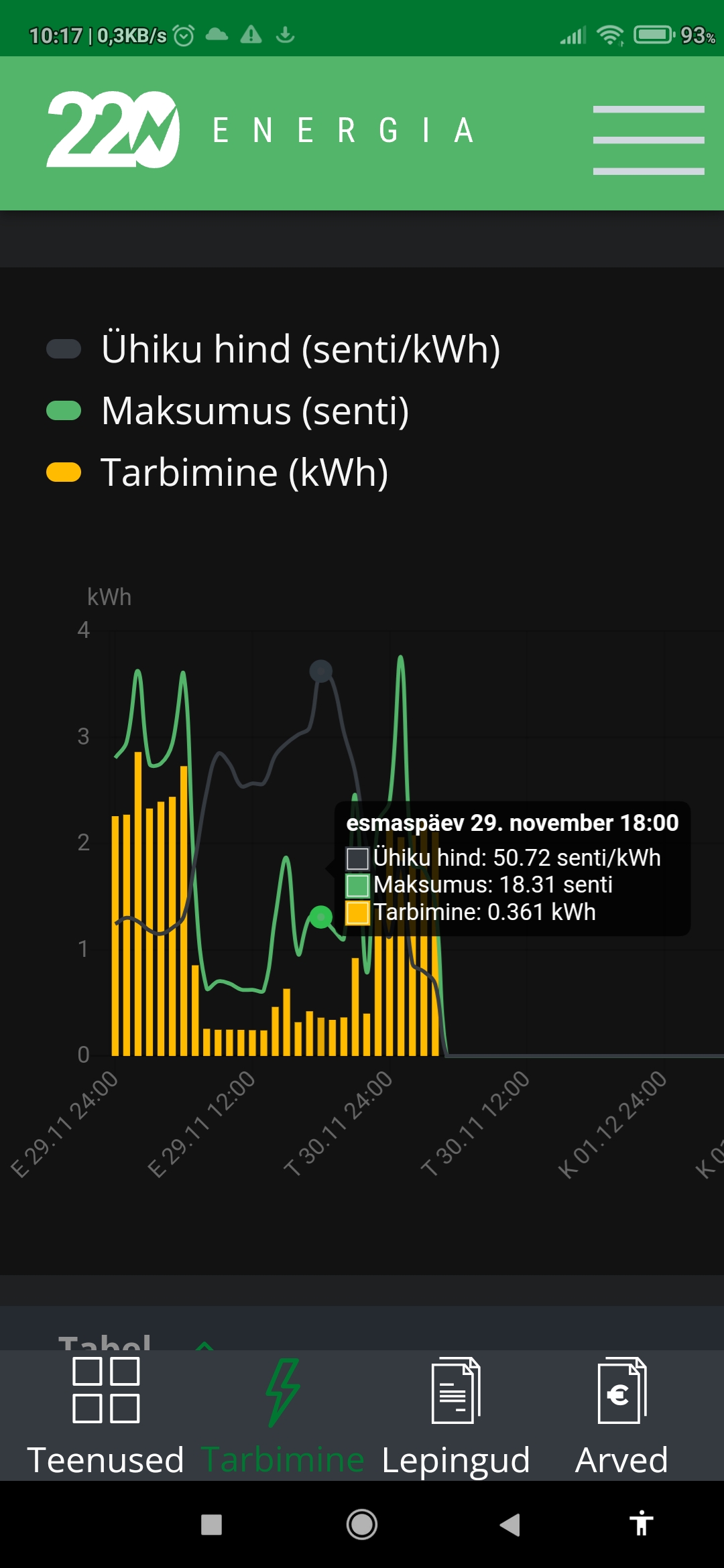 Selle määruse oleks võinud ka lõpuni lugeda. Põhimõtteliselt ei müü EE toodet vaid vahendab, võib ka mingi muu vahendaja valida -ping kirjutas: 28 Nov 2021, 21:08Mina pole kuskil väitnud, et EE äpis avaldatud hind oleks börsihind või õige või vale, selle oled ise väljamõelnud ja segadust tekitanud.kunn24 kirjutas: 28 Nov 2021, 19:40Anna sätted. Teen su eest ettevalmistustöö ära, TKS ei puutu siin väga asjasse, on olemas sellele tuginev määrus https://www.riigiteataja.ee/akt/1110220 ... teataja.ee .Konstrueeri omale sealt tugi, ma ei viitsi. See, et meil poes hindu koos KM-ga avaldatakse, on muidugi tore. Börsihind pole ju see hind, millega tarbijale müüakse. Nii, ei maksa ka segi seda miksida.Selline hind pole sugugi vale, sest vastavalt tarbjakaitseseadusele peab jaekliendile edastatav hind sisaldama kõiki makse ja täpselt sellise summa tahab võrguettevõtja saada 1kWh eest, mida eratarbija oma lepingu kohaselt tarbib.