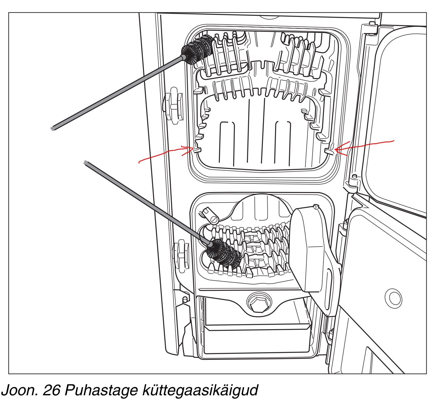 Mul need vaheplaadid olemas (joonisel noolega märgitud kohtades), kokku 4 tk ning 20 kW pelletipõletiga (PellX) on suitsugaasid puhastatud katlaga 180 kraadi ümber.