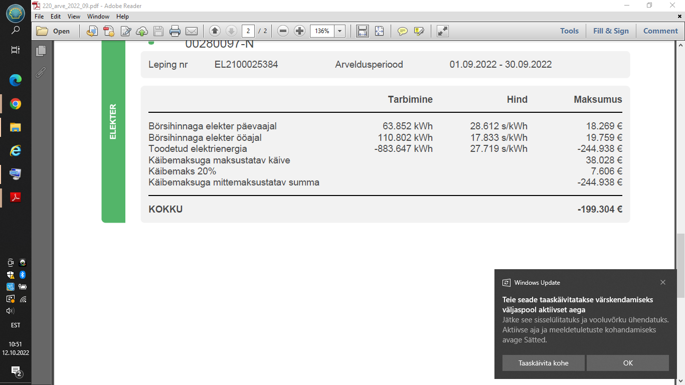 ping kirjutas: 12 Okt 2022, 11:06 Septembris veel oli suhteliselt soodne kütta Õ/Õ soojapumbaga ja ise toota elektrit.