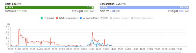 Huawei 6KTL-L1 tootlikkuse valetamine (Yield) täna hetkeseisuga. Fusion Solari vaates on nagu õige (1,14 kWh), kuid otse seadmest Sun2000-ga aiateibad (2,72 kWh). Kuna selle seadme soga on nii kapitaalne, siis on kahtluse all ka kogu tootlikkuse number. Kusjuures Fusion Solari Yield pandi alles mõni päev tagasi näitama, varem oli seal paneelide tootmise kohal 0 ja kui varem oli mingi number, siis selle polnud paneelide tootmisega midagi üheist (sealt midagi ei tulnudki, kuna olid lume all).