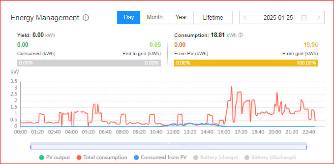 3. HW numbreid tuleb võtta paraja huumorina (kui probleem pole p-s 2). Selle p-i illustreerimiseks tänane inverterigraafik, paneelidest tuli ca 1 kWh, kuid mida näitavad selle huumorikontori numbrid? HW smartmeter on ka paigas.