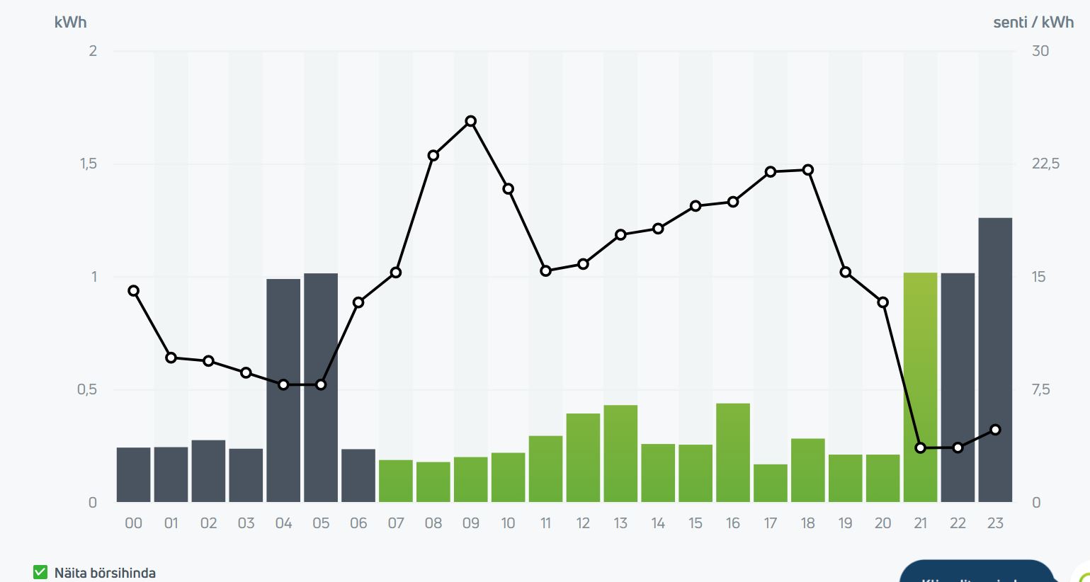 Kuna sellise korrektsiooniga programm valis liiga tiheda kütmise (ka veidi kallima hinnaga ajal), siis tuli kohe teha ka korrektsioon heatingCurve = 5 asemel heatingCurve = 2. Siis sai enam vähem ok.