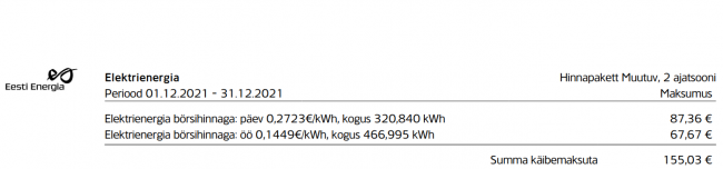 Aga sellega sai aasta läbi ja 11 900 kWh peale kulus 1800,23 €.