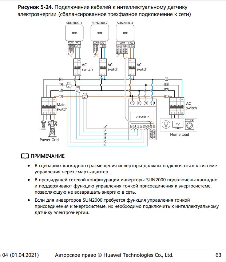 Leidisin Huawei L1 mudeli (ühefaasilised) ühendamiseks erinevatele faasidele venekeelsest kasutusjuhendist (ingliskeelses on vastupidi käsk panna kaskaadi samale faasile). Kuidas sinna paneele ja akusid ühendada, sellest juhend vaikis või ma ei leidnud.