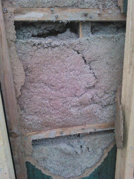 Niiskus oli lausa nii huvitavalt liikunud, et kohad kuhu oli paigaldatud savikrohv oli tselluvill punakaks määrdunud, kogu 35cm paksuselt kuni tuuletõkkeni välja.