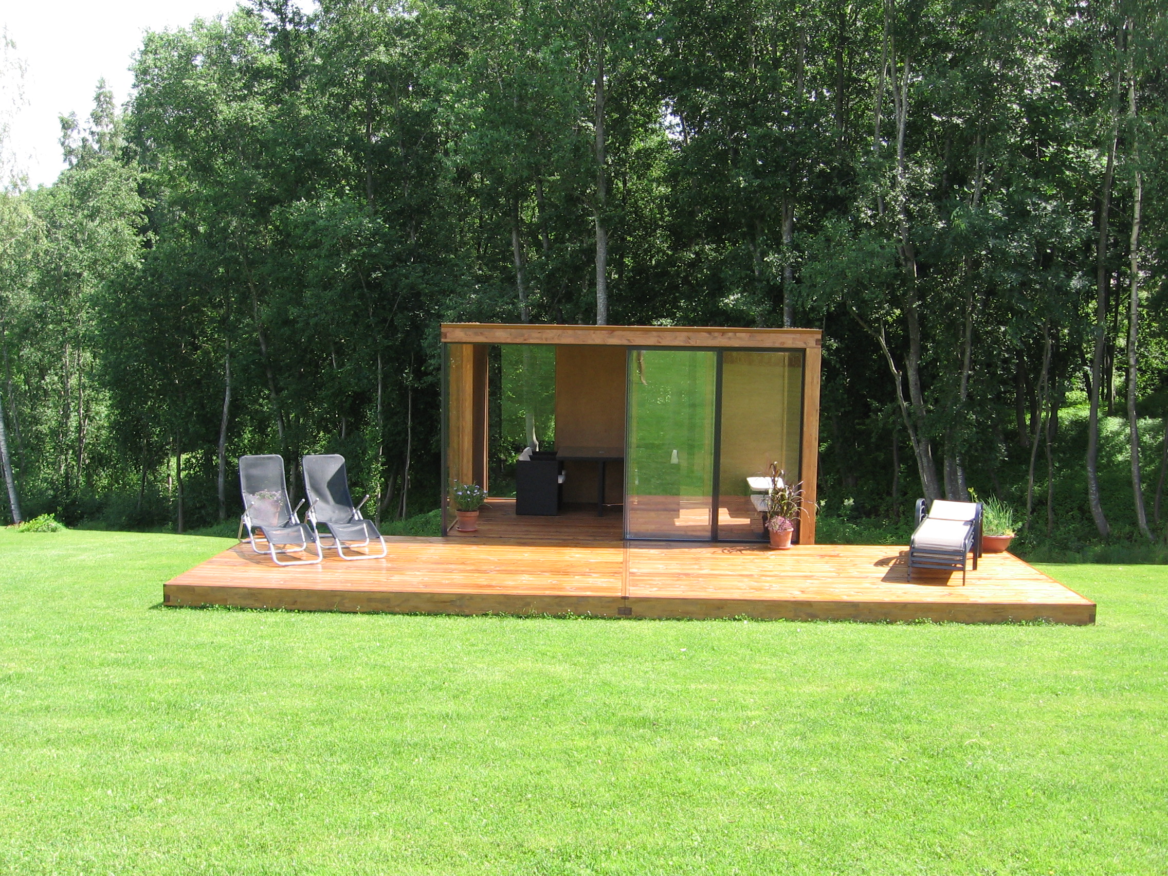 Ajamaja terrass on termopuidust kuna aiamaja ise ka termopuidust
