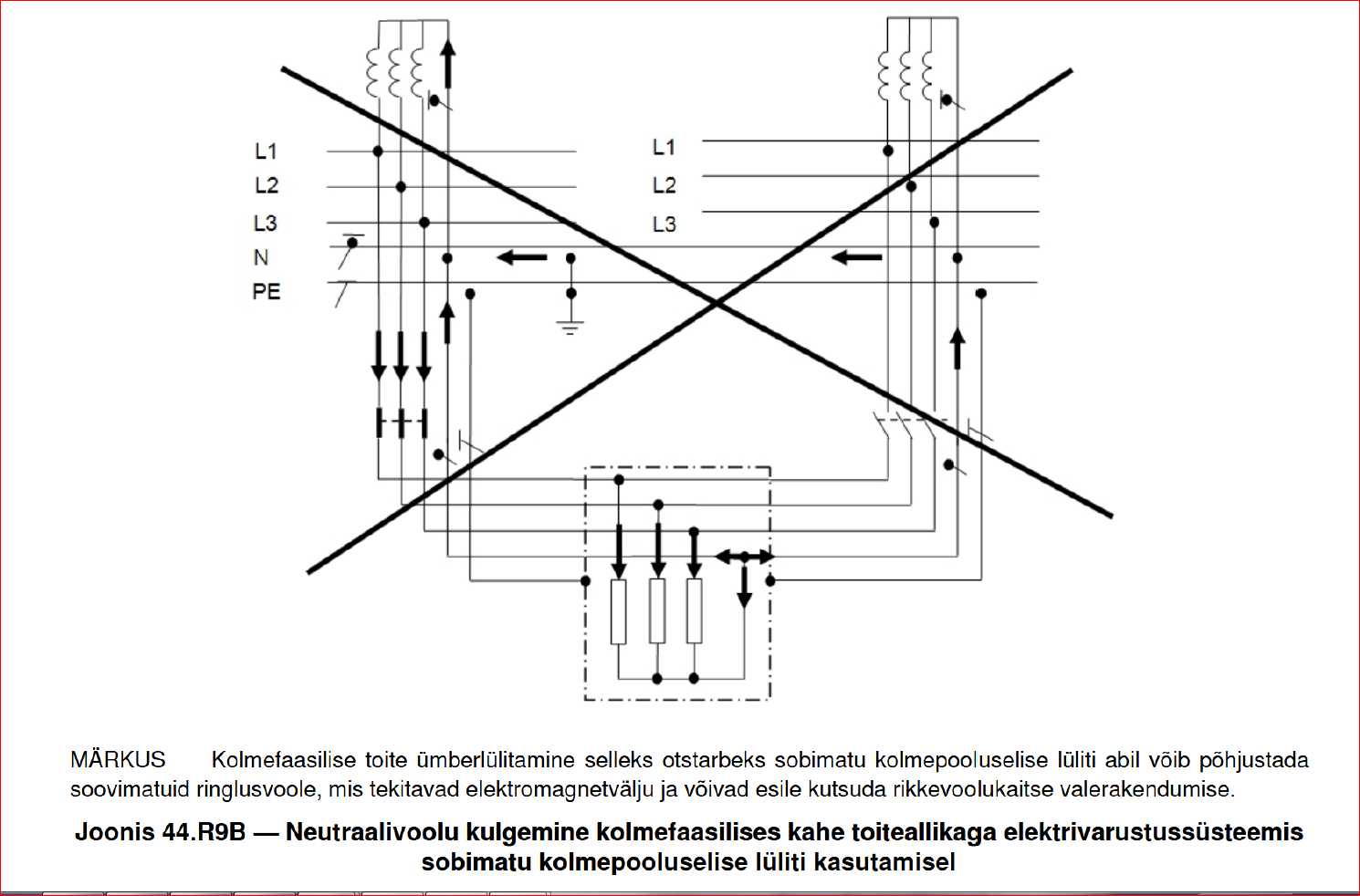 Kogu targutamise rikub ära 4- 444 oma EMC teemaga, mis väidab järgmist. Aga samas tekib küsimus, miks peab N-i vedama liinijuhtidest nii palju eraldi, teda veel erinevate ahelatena duleerima ja liini läbu tootma, et paigaldis suureks antenniks muutub.