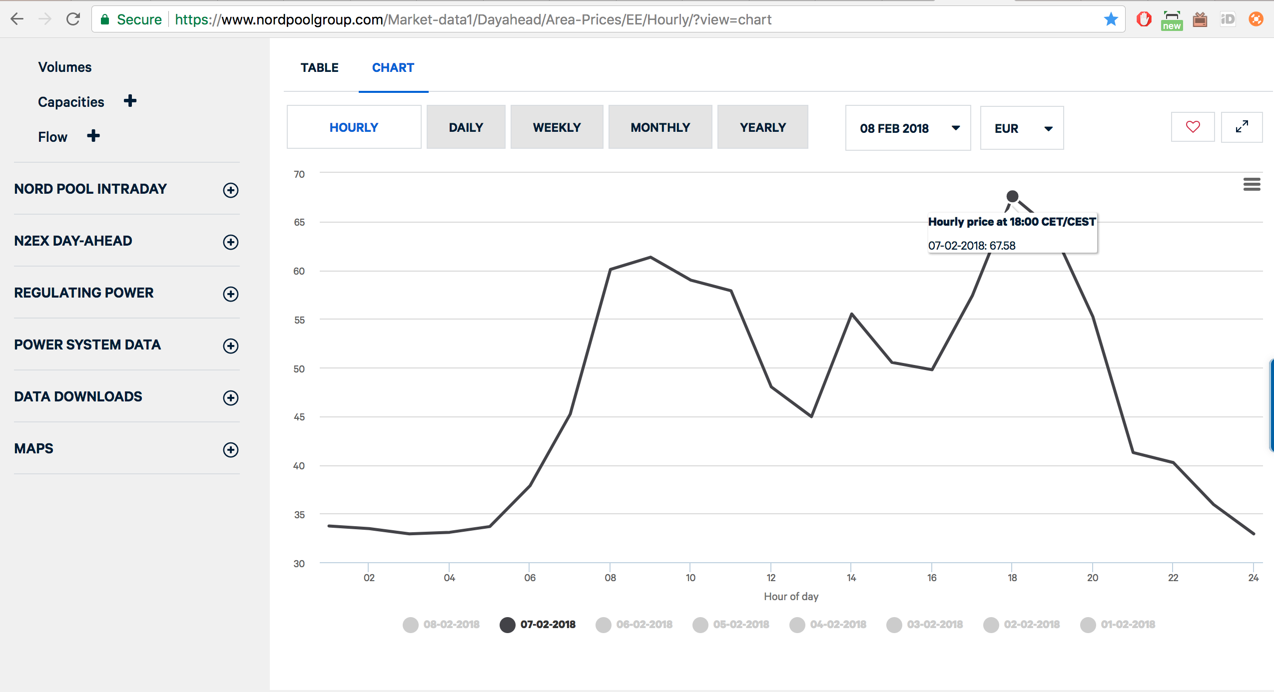 Täna hommikul informeeriti et mingil tunnil on ekstreemselt madal... 15.x €/MWh.