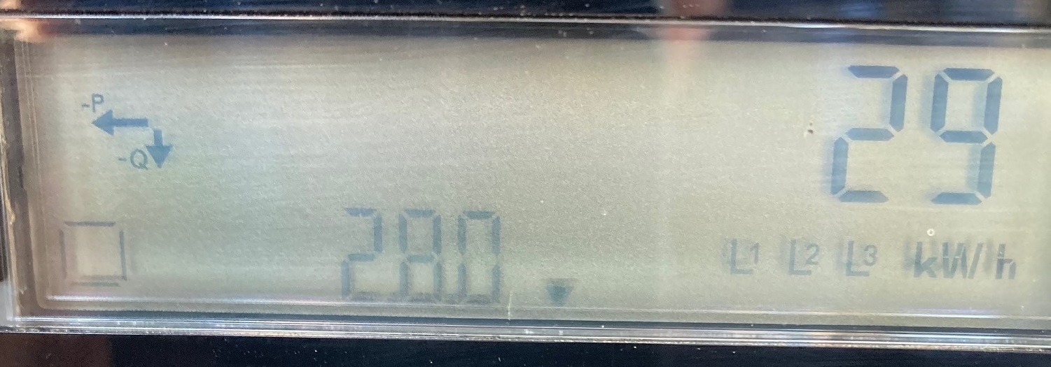 Tundub, et reaalset arvesti vahetuse vajadust tootmisele üleminekul pole. Ning mingi täiendava turvalülti toppimine liitumiskilpi tundub ka BS, sest inverteris on anti islanding protection, st võrgu kadumisel (arvestis on ka lüliti) lülitakse inverter automaatselt paari s-ga välja. Vasakul näidik näitas sel hetkel tootmist (-P) ja ka reaktiivenergia tarbimist (-Q). Näidiku järgi on näha, et ma olen tootnud 29 kWh, mille EL on arvestanud tarbimiseks. Tõsi, antud arvestimudel ei summeri toodetud/ tarbitud reaktiivenergiat, kuid eeldusel, et inverteris on cos fii reguleerimine ja vaikimisi on säte cos fii=1; mikrotootjaid reaktiivenergiaga nagunii ei kotita, siis pole sel ka mikroinverterite puhul tähtsust.