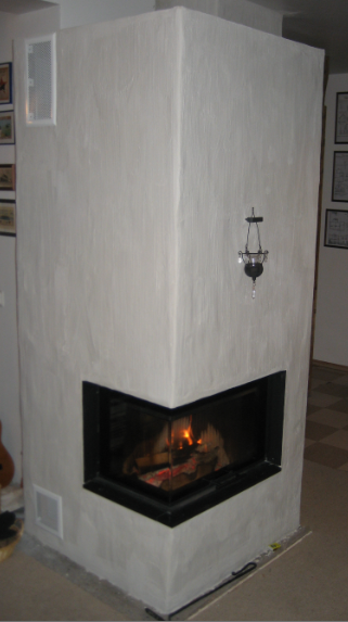 Välisviimistluse valmistamiseks pakutakse spetsiaalseid soojust akumuleeruvaid CPA ja CPA-K plaate. Nendest plaatidest on võimalik ehitada kuni 5m kõrguseid kaminaid ilma lisatoestuseta. Plaatide omavaheliseks ühendamiseks kasutatakse spetsiaalset kiiresti kõvenevat liimi, mille kasutusaeg on peale vee lisamist kuni 45 minutit. Liimi tuleks segada õiges vahekorras ja lasta 2 minutit seista peale mida veelkord segada. Siis on liim kasutamiseks valmis. Kiirendamaks tööde edenemist kasutatakse täiendavaks fikseerimiseks 5-6cm pikkuseid puidukruve 4,2x55mm või 4,2x65mm TORX.