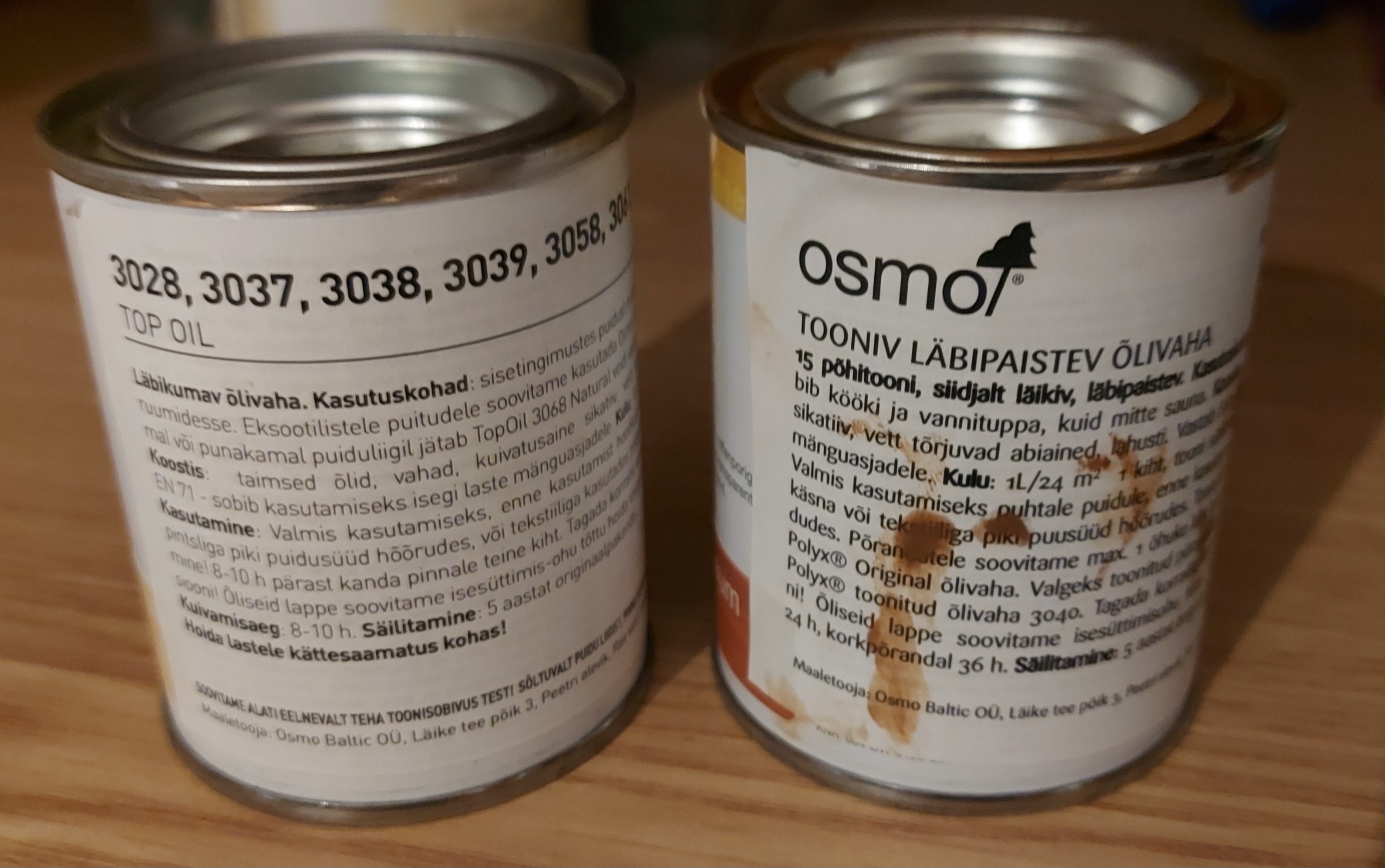 Osmo toodetega tegin. Alt toonitud värgiga ja peale Top Oil.
