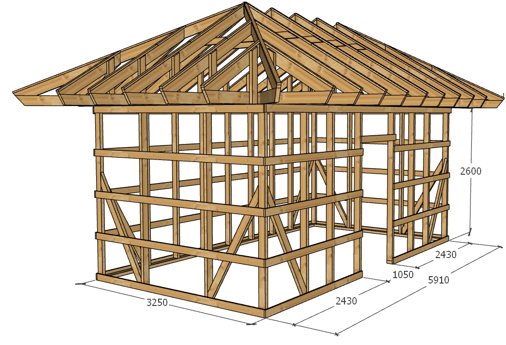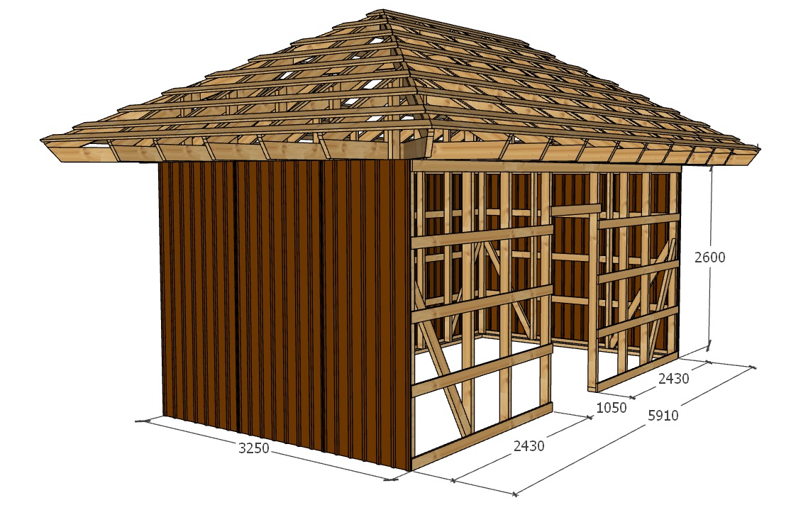 vuuk kirjutas: 12 Mai 2024, 09:40 Mudeldasin kuuri ehitusaluse pindalaga veidi alla 20 m2. Kelpkatusega - katuse kalle 30 kraadi. Seinte kattematerjaliks panin sedakorda trapetsprofiilpleki 15mm. Esikülge võiks tulla hõre vertikaallaudis, et puud paremini kuivaksid. Kokku mahub sellesse kuuri vähemalt 30 ruumi puid. Mõlemalegi poole ust siis 15. Mõeldud nii, et sobiks majale, mille aastane küttepuude kulu oleks 15 ruumi. Ühel poolel oleks kuivade puude järg ja teisel pool puud, mis vajavad kuivamist.