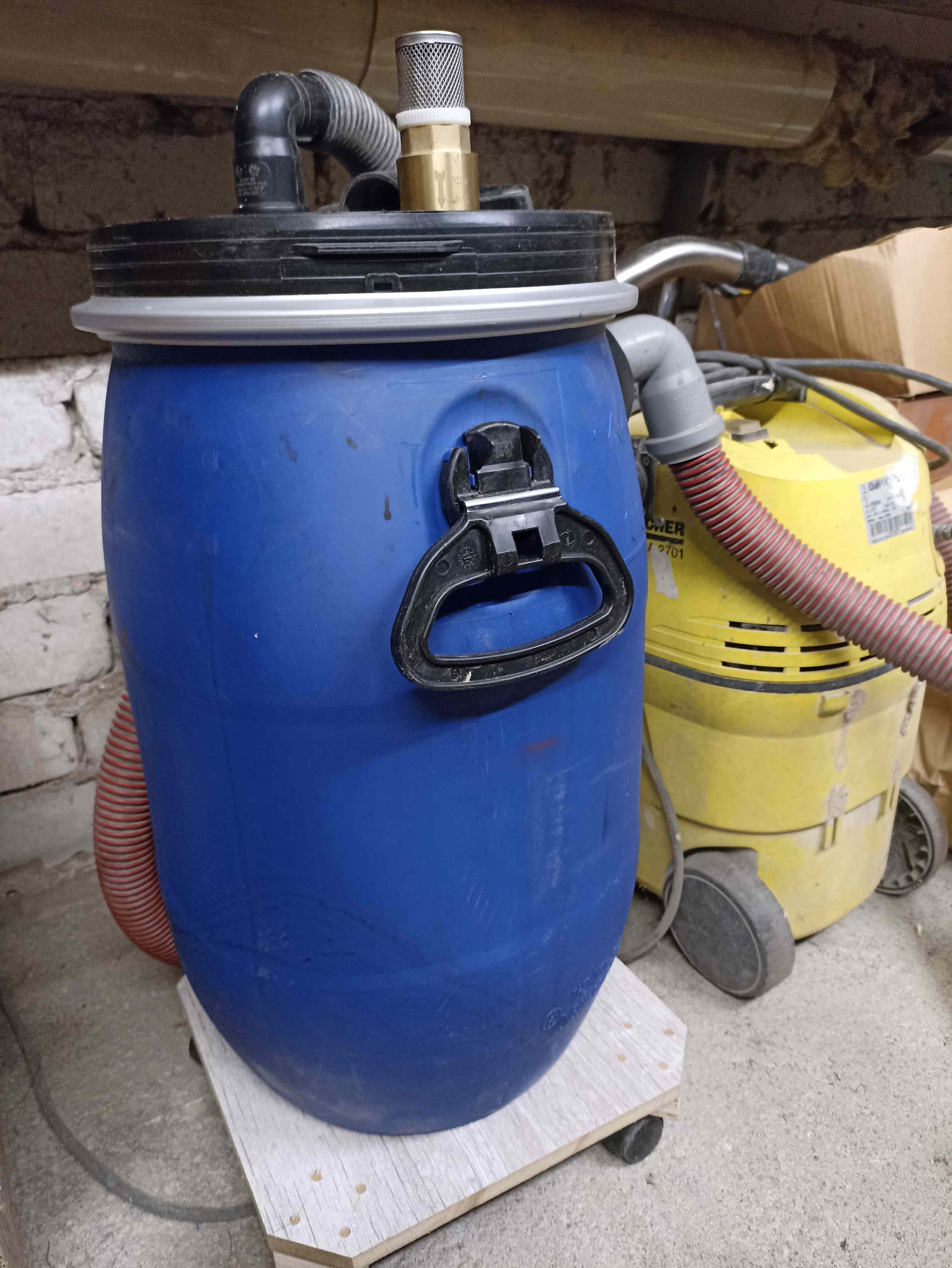Sama asja jaoks panin 2 1/2 tollist klappi järjestiku, minul Samsungi imeja ja 10l plastist vahepaagiga kooslus töötab.