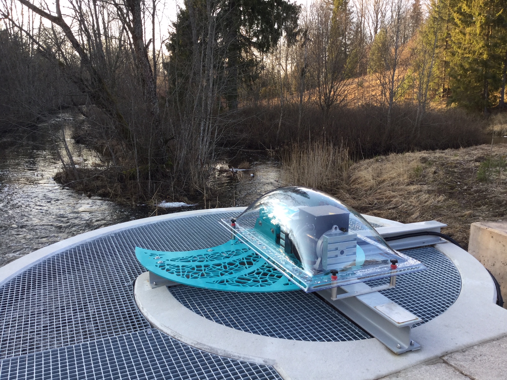 Pmst. saab labade kaldenurka ( 5 asendit) muuta, kuid see on paras peavalu ning tehniliselt tarbetu. Kui tahan võimsust mingil põhjusel reguleerida, liigutan turbiinikanali väravat ja reguleerin vooluhulka. Tegelikkuses sätid nominaali piirides max. võimsuse juures tööle ja ELC teeb ülejäänu.Kui veetase peaks ootamatult alanema, kahaneb vaid saadav võimsus, muud näitajad jäävad paika. Kaplan turbiinidel ( ka väikestel) reguleerib hüdraulika juhtlabasid, kuid sellel on suur reageerimise inerts ning ebamõistlikult keerukas väiketootja jaoks. Minu turbiinist läheb lahedalt 10x10x10 cm mõõdus sodi läbi ( kui peaks mingil põhjusel prahivõrest läbi saama;))). Ja isegi ühel kevadel kanalist irdunud ca 300-400kg suurte kamakatena jäärisu jahvatas turbiin suurema probleemita peeneks.Turbiinikamber on spiraali fragmendi kujuga, ning pöörlev veemass tabab labasid sobiva nurga all. Tööstuslikes turbiinides on selleks juhtlabad, mis veevoolu suunavad, kuid see on hoopis teine maailm.