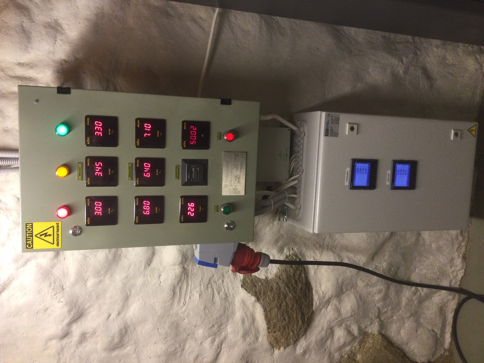 Generaator on ühendatud väikese hüdroturbiiniga, mis võimaldab saada väljundiks ca 6,5kW võimsust. See on lihtsalt juhitav energiatootmine, kus turbiini füüsiline käivitamine ja sulgemine võtab vaid loetud minutid. Saadav võimsus sõltub turbiini läbivast vooluhulgast ning surve kõrgusest (veetasemest reservuaaris). Hüdrole omaselt on võimsuse muutused pikemaajalised ja sujuvad. Ei pea vist rõhutama, et toodan ka öösiti ning ajal, millal energiat enim vaja- tavaliselt novembrist-juunini non-stop. Selle 7 kuuga " jahvatan" ca 25-28MWh energiat. Turbiin genekaga koostöös ELC-ga annab õige pinge ja sagedusega voolu sujuvalt vahemikus ca 1kW-7kW. Sageduse hälbed ei ületa normaalse koormatuse korral 0,5Hz. Minu eesmärk on saadaolev ressurss koha peal tarbida, mitte raha teenimise eesmärgil müüa. Mul on päris suur majapidamine, ning paraku on tiputarbimise võimsused kaugelt üle genekast saadava. Seega olen seni omanud justkui paralleelmaailma, kus geneka taha on ühendatud peamiselt küttekehad- soe vesi, kürvalhoonete elektriradikad, vannitubade põrandakütted jms. Pean jälgima, et tarbijate võimsus ei ületaks genekast tulevat ning püüan ka süsteemi tervise huvides faase koormata võimalikult sümmeetriliselt. Abiks ikka, kuid vahetult elektriarvetele on mõju soovitust kesisem, sest tervet majapidamist taha ühendada pole võimalik. Sauna vannid, triikrauad, kuivatid, 3f-lised külmkambrite kompressorid jms. ajaksid selle bilansi kohe uppi. Kui on muidugi tõsisem elektrikatkestus, saan kiiresti ka kogu majapidamise taha tõsta, kuid siis ei kasuta kohvimasinat, ei triigi, vanni ei lähe jne.
