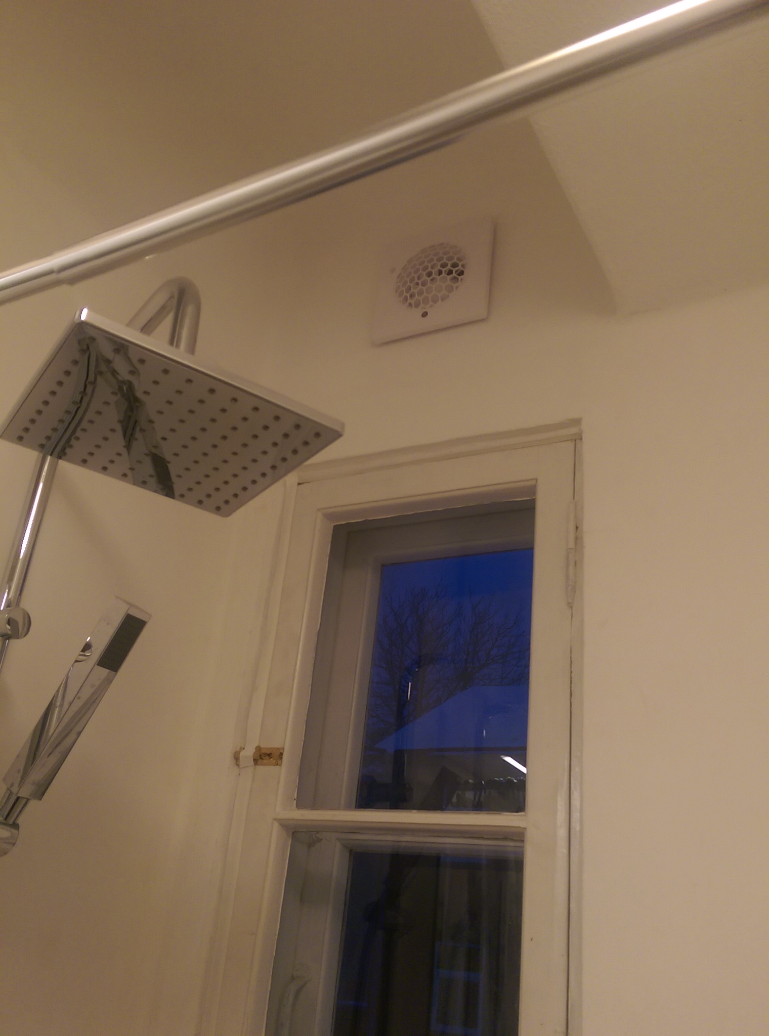 Puitmaja korterisse on ehitatud abiruumist dushiruum. Väga väike (ca 2m2) ruum, mille ventilatsioon on elektriline ja läbi majaseina välja. Kahjuks puhub aga plafoonist külma välisõhku sisse. Mis sai valesti tehtud ja mida parandada annab?
