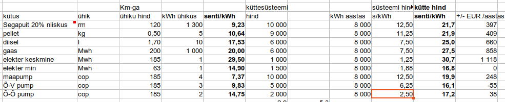 Ootaks ka ära realsed elektri hinnad ni 3 kuni 5 aastaga, siis saaks panna sinna tabelisse ja uuesti arvutada. Muidu see sellne lihtsalt numbrite jada. Ja muidugi need kütteseadmete maksumused on ka sellised väga umbmäärased. Tore oleks ikka päris ja reaalseid arve näha.