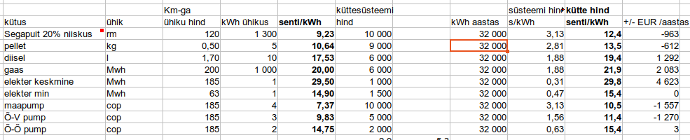Kui siin juba erinevate kütteviiside hinnavõrdlus käib, siis tasuks see ka kirja panna.
