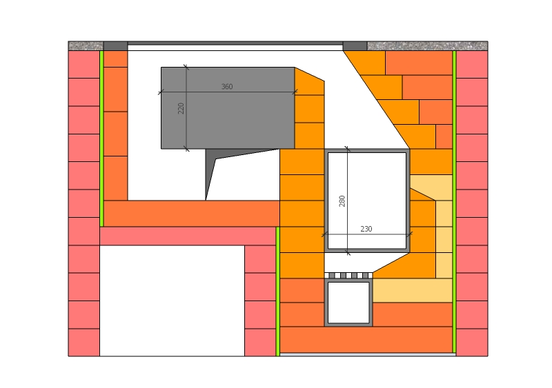 Põhimõtteliselt soome tüüpi pliit. Omast tarkusest tegin alumised lõõrid suuremad, kui selles kurikuulsas Wienebergeri raamatus - lõõri ristlõige c.a 22x20cm, sama mõõduga ava soojamüüri. Korsten 14x14cm lõõriga. Müüri topsidel imeb paberi kinni, tõmme korralik, korstnaljalas samuti.