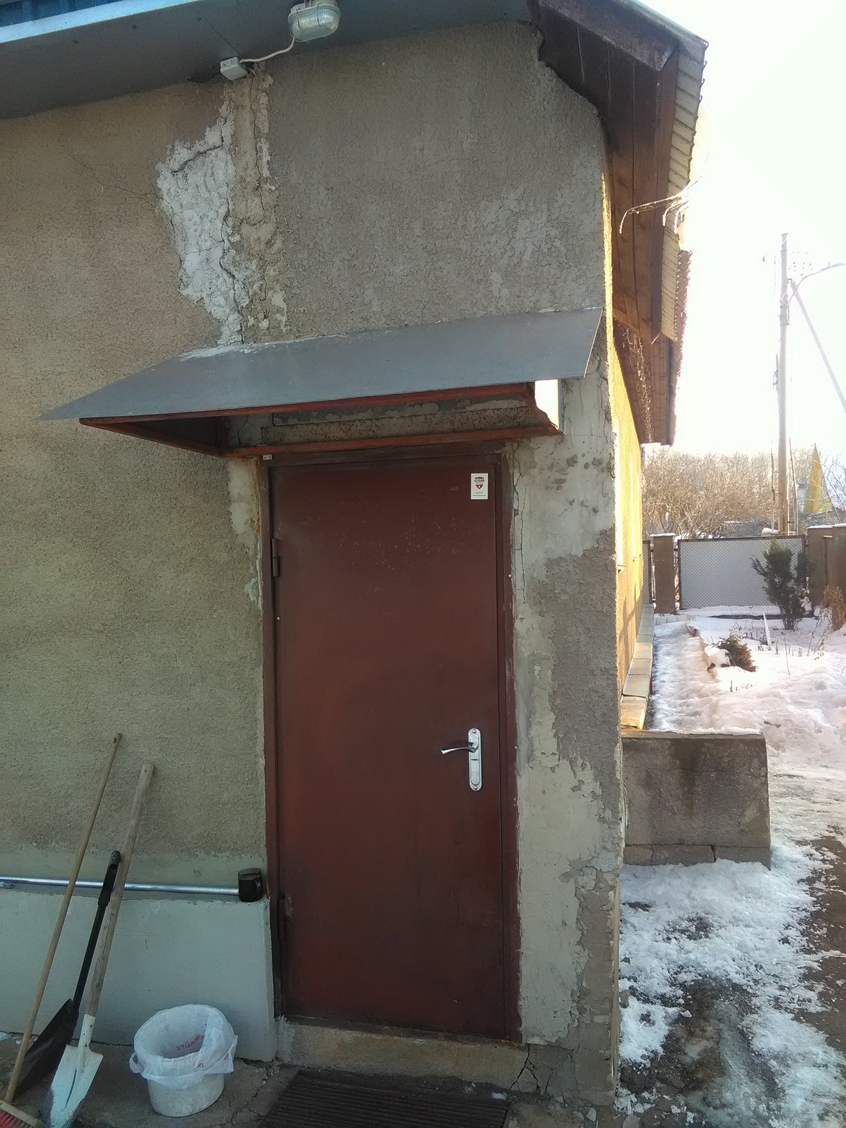 eesmärk oleks ajutiselt kuidagi seina vajumine pidurdada, et esimeste soojadega saaks lammutama hakkata. Kuigi see on kinniseks eeskojaks ehitatud, on veel uks, mis oli varem välisuks, täiesti paigas, seega otsest külma pole karta...