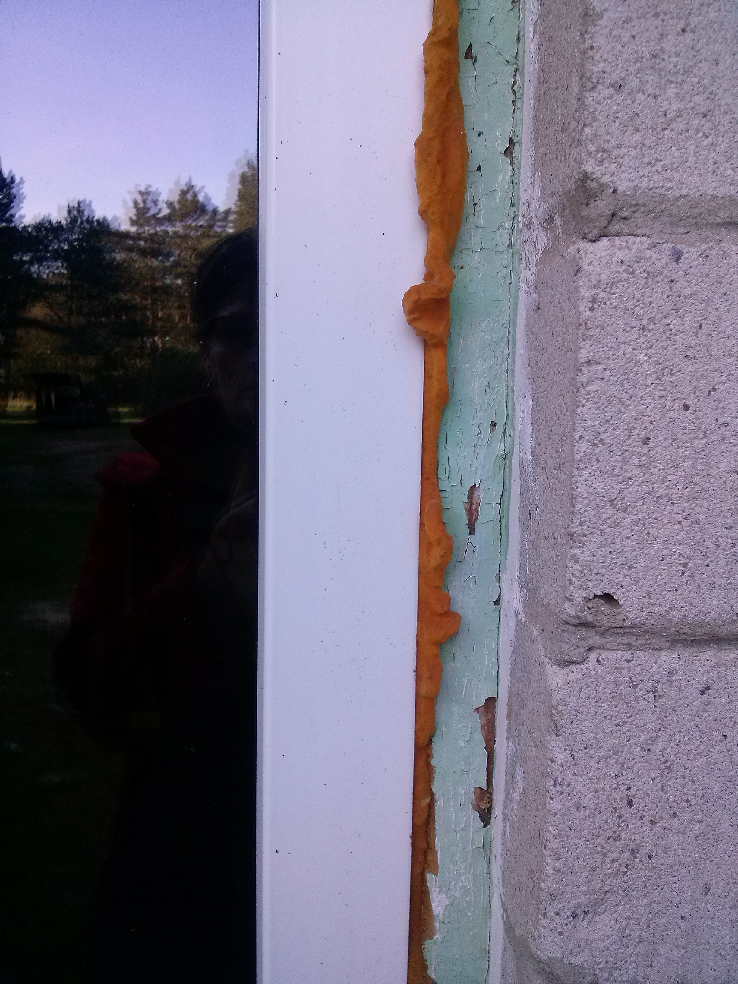 Raami külge omakorda mõlemas suunas 21x95-195 höövellauad värvitud soovi kohaselt. Tühja nurga mis jääb höövellaua taha prussi ja aknaraami vahele veel vahtu täis lasta enne höövellaua kinnitamist.
