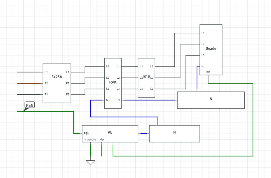 N ja PE latid on ju selgelt näha PEN-lati (klemmi) kõrval paremal, samuti lahtiühendatud sild.Mario002 kirjutas: 29 Okt 2019, 11:41 ... Kus on N ja PE latid, kuhu ülejäänud asjad ühendatud on või sooviti näidata PEN lahutust