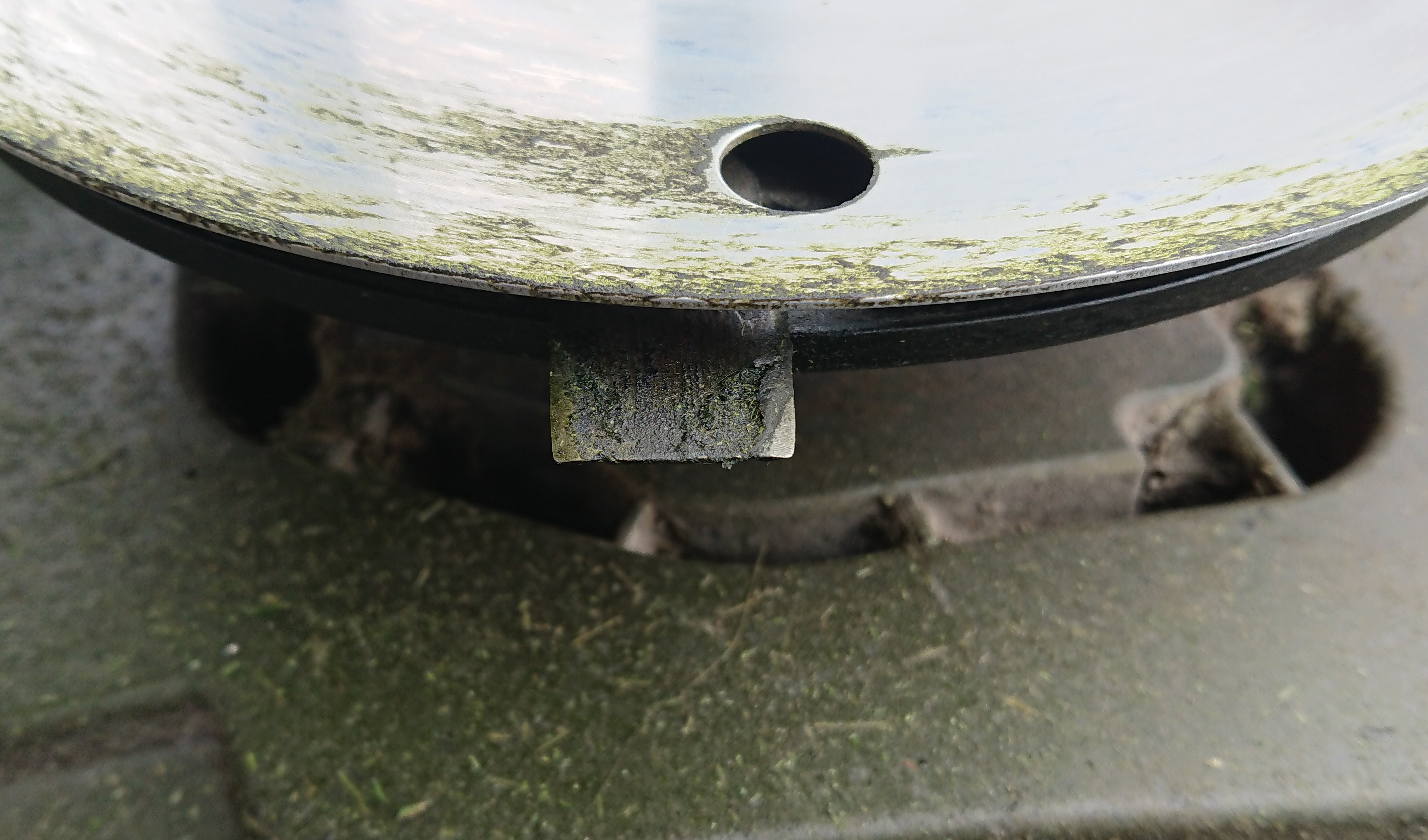 Terade osas - sõltub. YMMV. Mul ka Husq. originaalid, 27.04. foto, 2. hooaja algus: Hea, et niiduki ümber keerasin! Kõik terad olid samasuguse kitiga kaetud nagu vasakpoolne. Kui lõikeserv on kumer, raadiusega 3mm, siis võib oletada, et lõikamise asemel toimus rohu paitamine