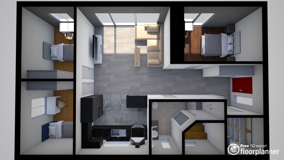 Paar mõtet: 1) kuna sul on ristkülik maja plaanis siis oleks efektriivem kui sissepääs oleks maja pikemal küljel, praegu on sul palju koridori pinda. 2) liiga vähe pinda asjade hoidmiseks. Inimesd koguvad meeletus koguses asju oma elu jooksul. Võib olla tulevikus sinu perel on palju erinevaid hobisid mis võtavad kõik ruumi mida sul planeeritud pole.3) tahad teha youtube videosid aga sul puudub ruum kus neid monteerida. Näen et magamistoas on laud kuid pole kindel et see on parim idee.