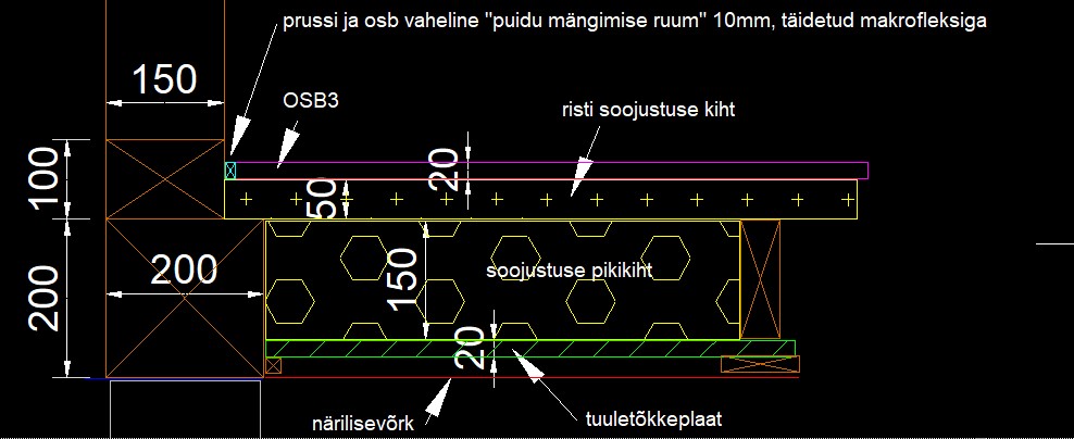 Ok. Tänan tagasiside eest. Palju peaks lisama, et enam armetult vähe poleks? Mul tõesti pole neid kogemusi, et teada palju oleks enamvähem? Praegusel juhul oleks 50 + 130 + 20, ehk 200mm soojustust. Kui tuuletõke tala alla panna, siis 220mm.