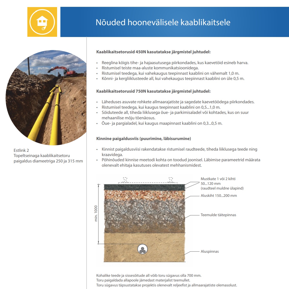 Igatahes Elektrilevi paigaldab oma kaablid ilma torudeta ja lausa keelab projekteerida torusid mujal, kui selleks ette on nähtud (ristumised kommunikatsioonidega, teede all jne)