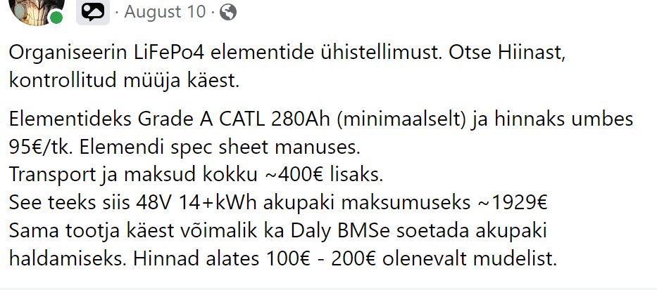 Arvutustes kena, aga aku mis nii kiirelt laeks ei ole kättesaadaval hinnatasemel.trebla kirjutas: 18 Dets 2021, 02:50 standartne eramu peakaitse on tänapäeval vast 3x25 A ehk 17 kW.