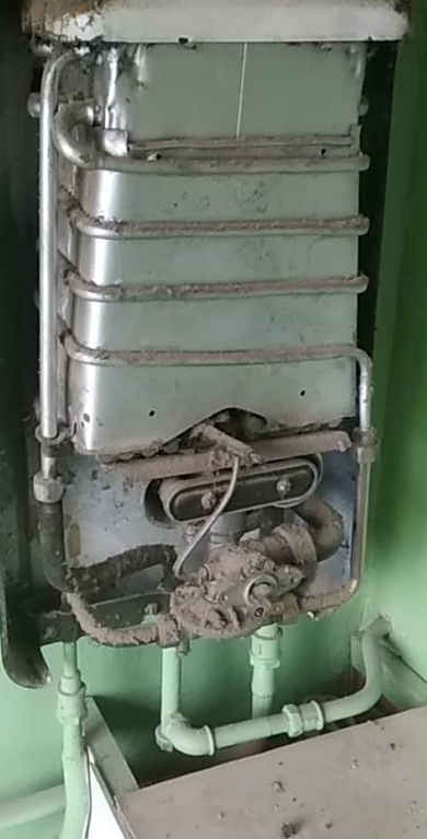 Pole hetkegi töötanud, seega pole ka hooldatud. Anname tolmurullid andeks. Vaja remondi käigus maha võtta ja utiili saata. Saan ma õigesti aru, et külma vee sisendile pime ette ja võib maha võtta? Gaasi majas pole. Boilerist edasi suunduv veetoru läheb ka maha. Külma sisend on see, mis tuleb paremalt seinast ja siseneb seadmesse keskmisena?