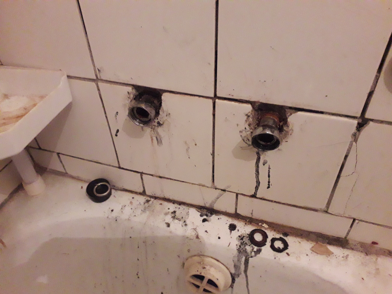 seina sees 1/2'' tolline keere mustas torus ja tuts ekstsentriline. Kahtlen kas neil mingit kuuskanti sees üldse oli (ei mäleta selliseid võtmeid vene ajast) - keerati ikka väljast torutangide ja joptv..m...ga, keeramiseks on tutsidel kant peal. Kui nüüd plaat ka veel seina pandud siis ei mahugi eriti keerama.