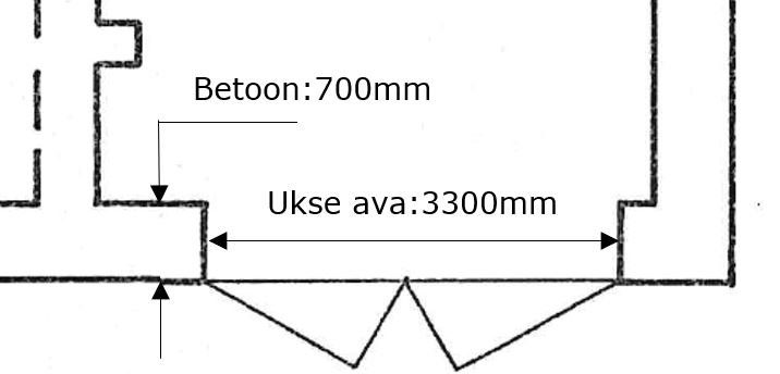 Osa hoone all soklikorrusel (kõrguste vahe) on läbisõidetav garaaž (kaks ust). Plaan on üks uks kinni müürida ning väljaspoolt pinnasega täita. Ukse ava on 3,2m (kõrgus) x 3,3m (laius). Pildil siis pealt vaade.