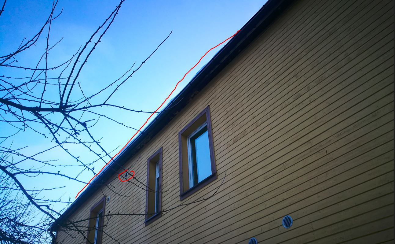 1. Termokaameraga uurida, kas katuse ja seina sõlm ei leki sooja.