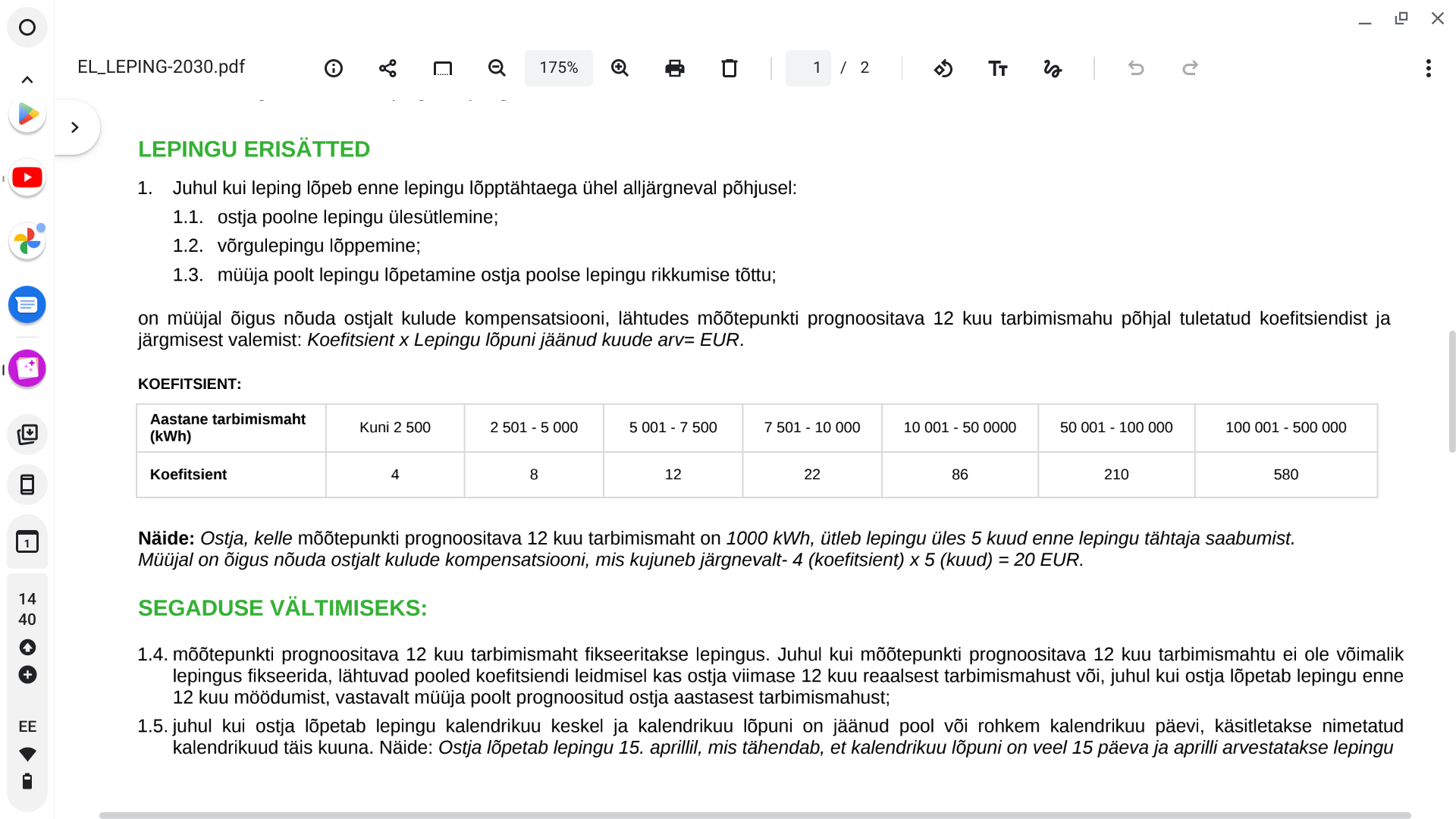 Nagu näha, siis leppetrahvi summa on muutuv ja sõltub aastatarbimisest.