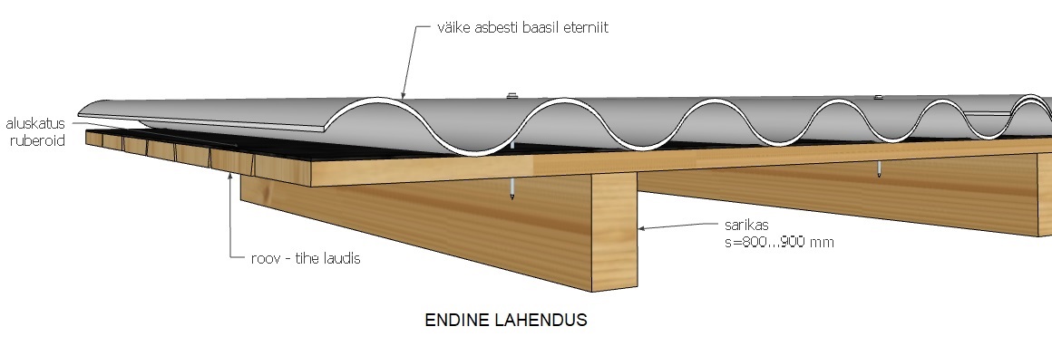 Vana eterniit oli pandud otse täislaudisel olevale ruberoidile ilma täiendava õhuvaheta ja oli olnud nii 50 aastat.